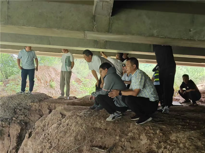 8月8日,市公路事業(yè)發(fā)展中心總工趙兵與310項目公司副總經(jīng)理許立、養(yǎng)護管理部部長王延超,查看韓家村大橋、金水河大橋橋下水毀情況,現(xiàn)場制定修復方案。